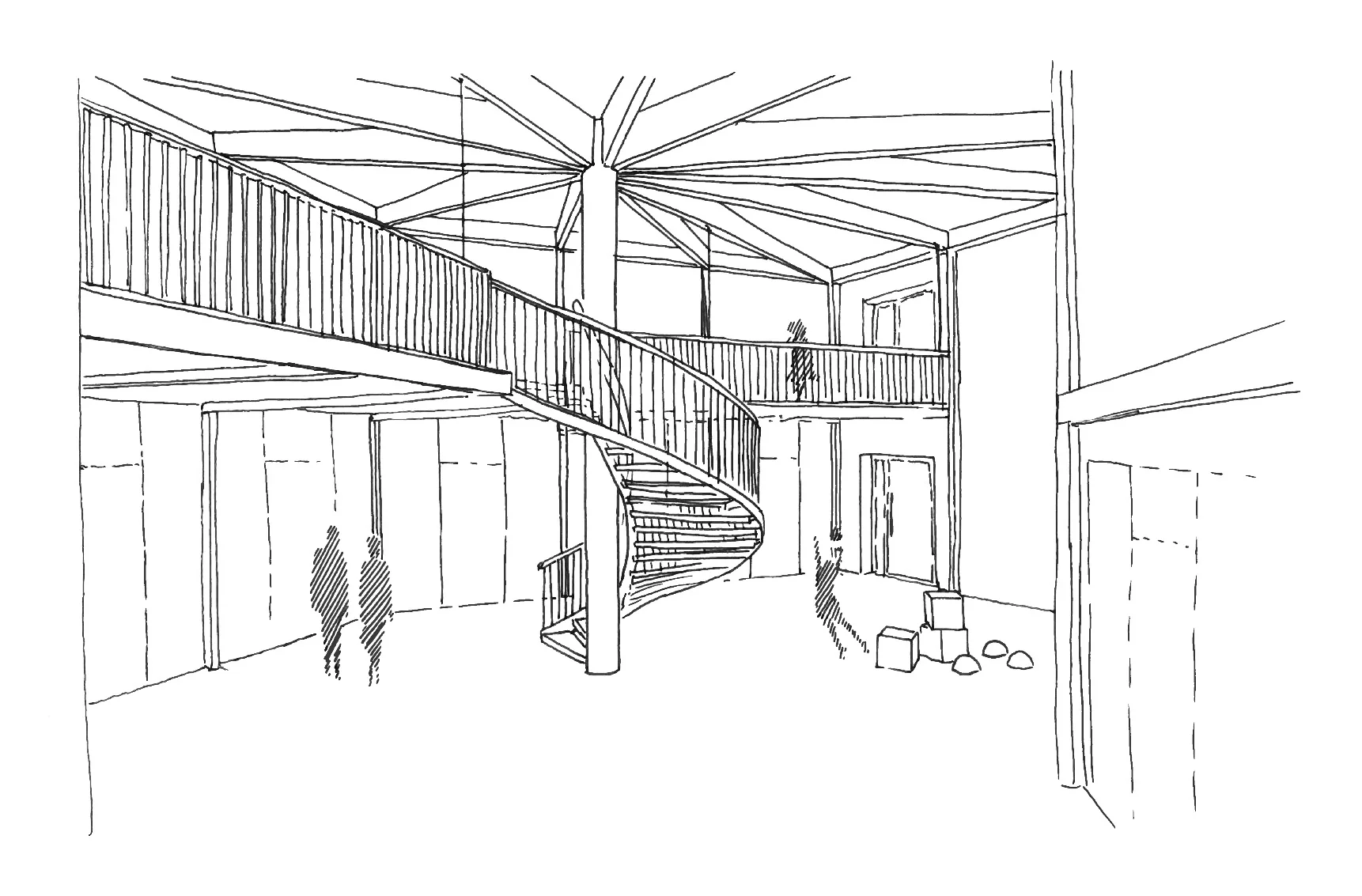 Durch eine geschickte Anordnung des Raumprogramms kann im Erdgeschoss der ehemaligen Turnhalle die Tagesstruktur untergebracht werden. Darüber werden im Obergeschoss unter anderem der Mehrzwecksaal und die Bibliothek angeordnet. Der alten Turnhallen-Trakt wird so dank der neuen Nutzung, deren Synergien und der zentralen Lage zu einem halböffentlichen Hub innerhalb der Schulanlage Zweien.
